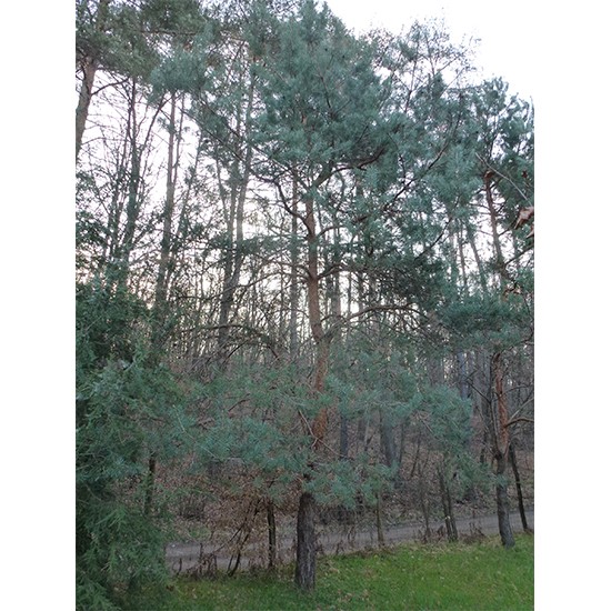 P. sylvestris is a large evergreen tree to 25m, with the upper trunk and branches orange-brown, developing a picturesque, irregular outline with maturity. Twisted grey-green needles are borne in pairs. Cones 5cm in length.