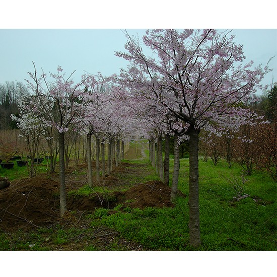 Prunus ‘Pink Shell’ è un piccolo albero deciduo, dal portamento esteso, che può raggiungere gli 8 m di altezza. Le giovani foglie, verde chiaro, contrastano con i delicati fiori, singoli, a coppa, pendenti, del diametro di circa 2 cm.