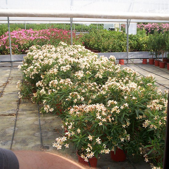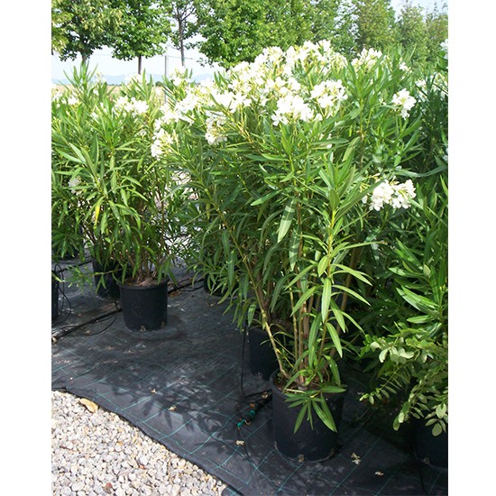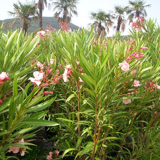 Nerium oleander è un arbusto sempreverde con fusti generalmente poco ramificati che partono dalla ceppaia, dapprima eretti, poi arcuati verso l’esterno. Le foglie sono verde scuro-grigio.In estate produce fiori di circa 3-4 cm, bianchi, rosa o rossi. Può raggiungere un’altezza di oltre 2m.