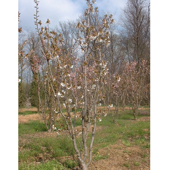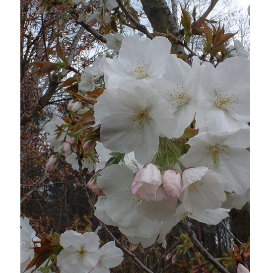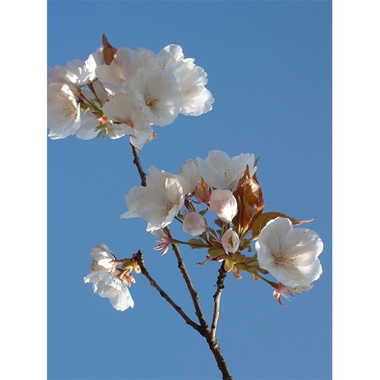 Prunus ‘Tai-haku’ is a medium-sized deciduous tree with a broad spreading crown. Young leaves deep bronze-red, later green, to 15cm in length. Pure white, single flowers up to 6cm in width.