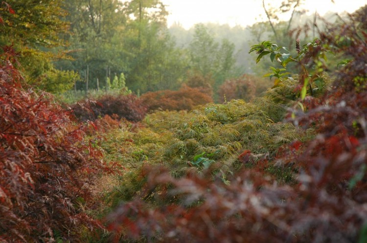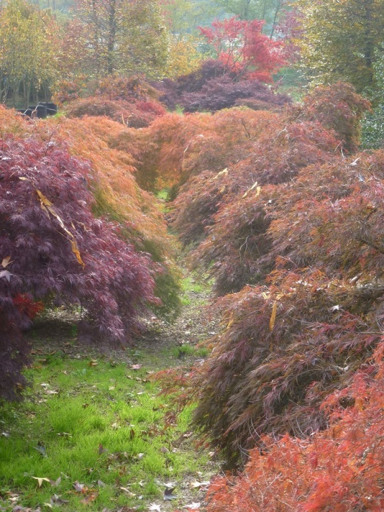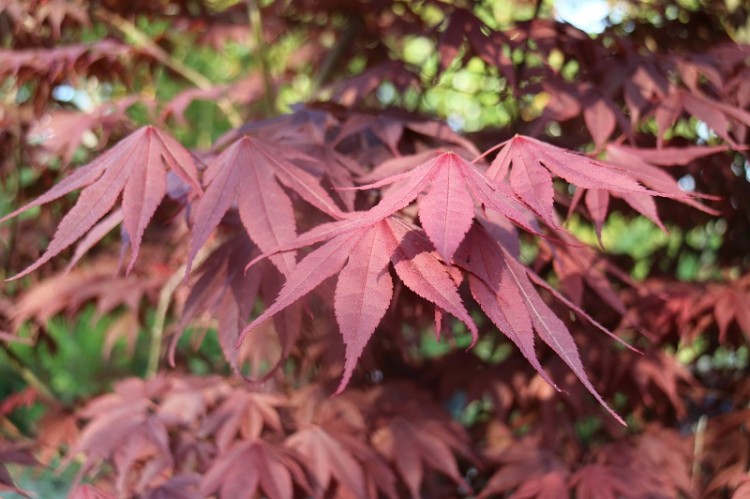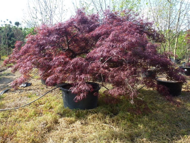 Acer palmatum “Dissectum Atropurpureum” è un cespuglio con un tasso di crescita molto basso, con forma ad ombrello. Il fogliame è rosso in primavera e estate e arancione in autunno.