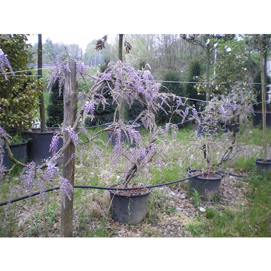 Wisteria sinensis è un rampicante deciduo molto vigoroso, fioritura copiosa blu-violetta, prima della comparsa delle foglie, intensamente profumata e formata da grappoli lunghi 15-35 cm.